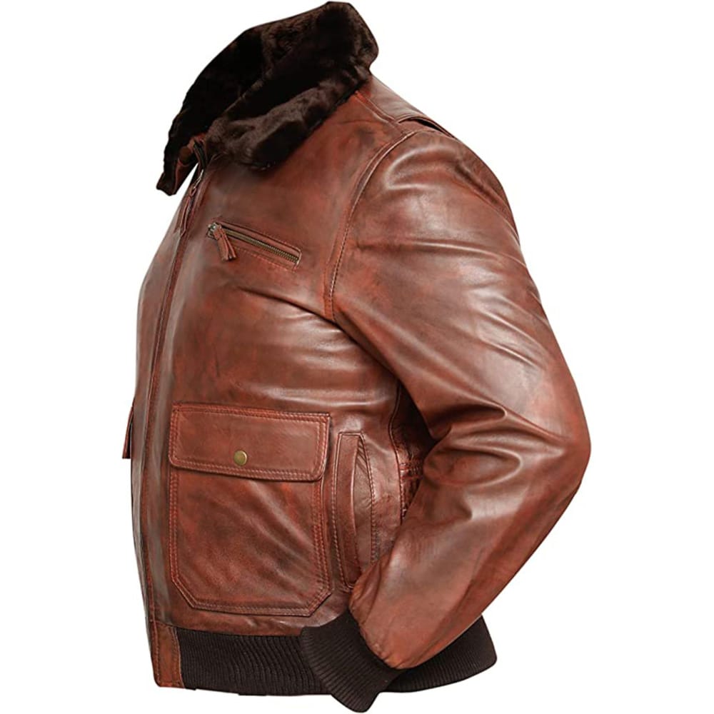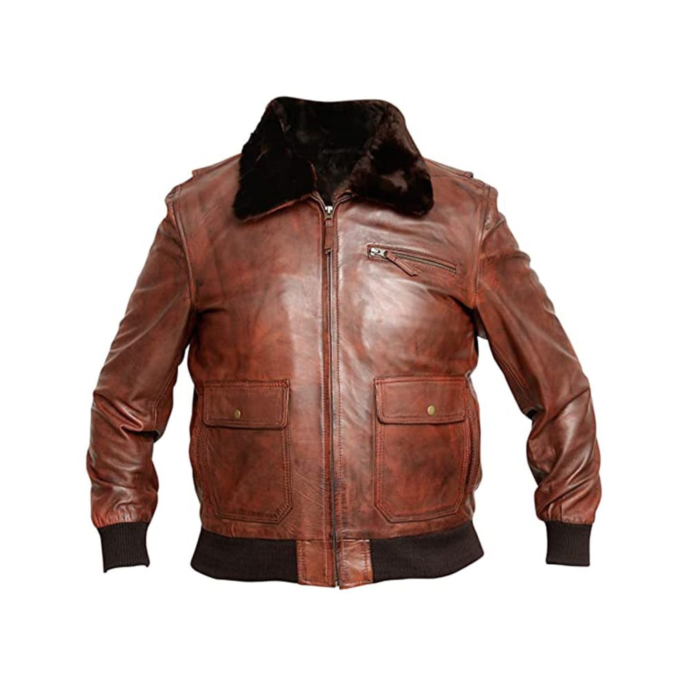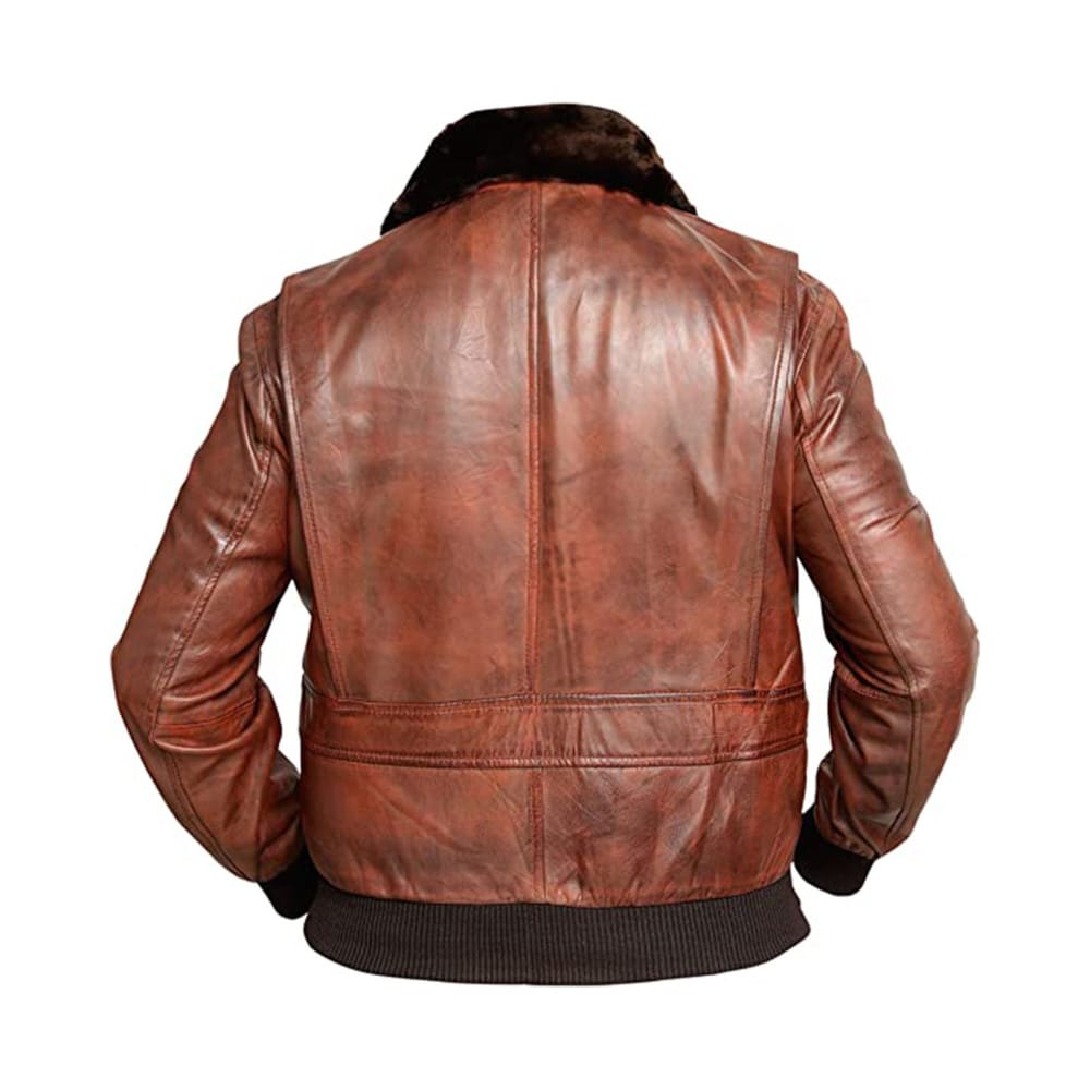The G1 Vintage Leather Bomber Jacket is a tribute to the legendary U.S. Navy flight jacket, designed for those who appreciate both style and history. Made from premium genuine leather, this jacket offers durability and a rugged charm, while its fur collar, ribbed trims, and classic bomber silhouette capture the essence of vintage aviation gear.