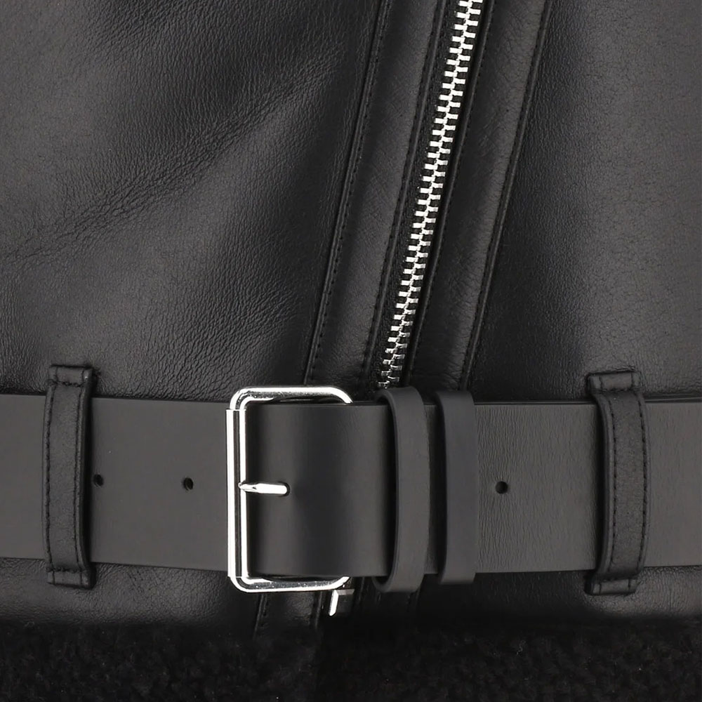 The Shearling Ladies Black Aviator Jacket is designed for women who want fashionable, cozy, and high-quality outerwear. Made from genuine leather and featuring a luxurious shearling lining, this jacket combines rugged durability with feminine tailoring for a versatile winter wardrobe staple.
